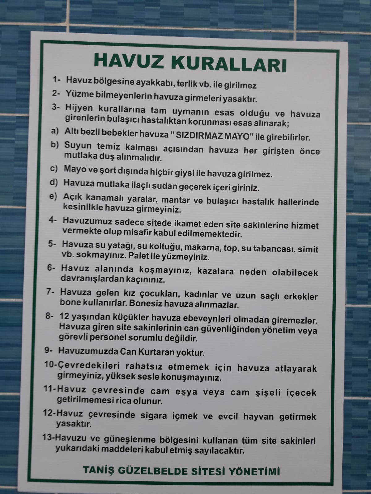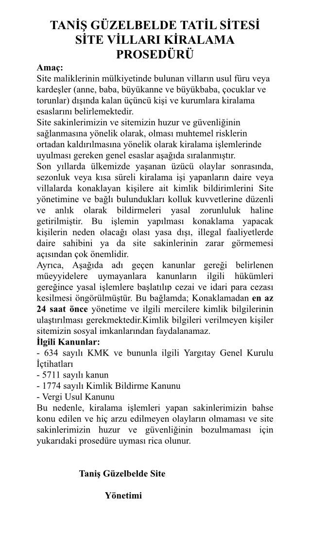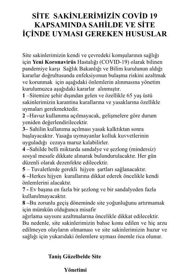 SİTE SAKİNLERİNE ÖNEMLE DUYURULUR
