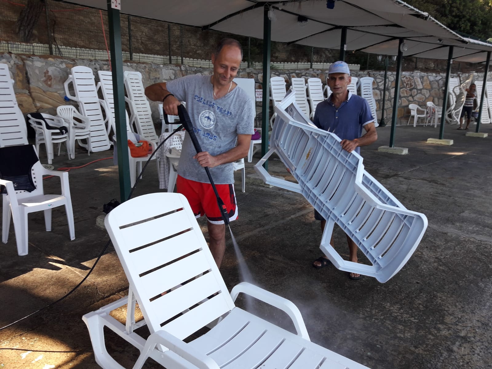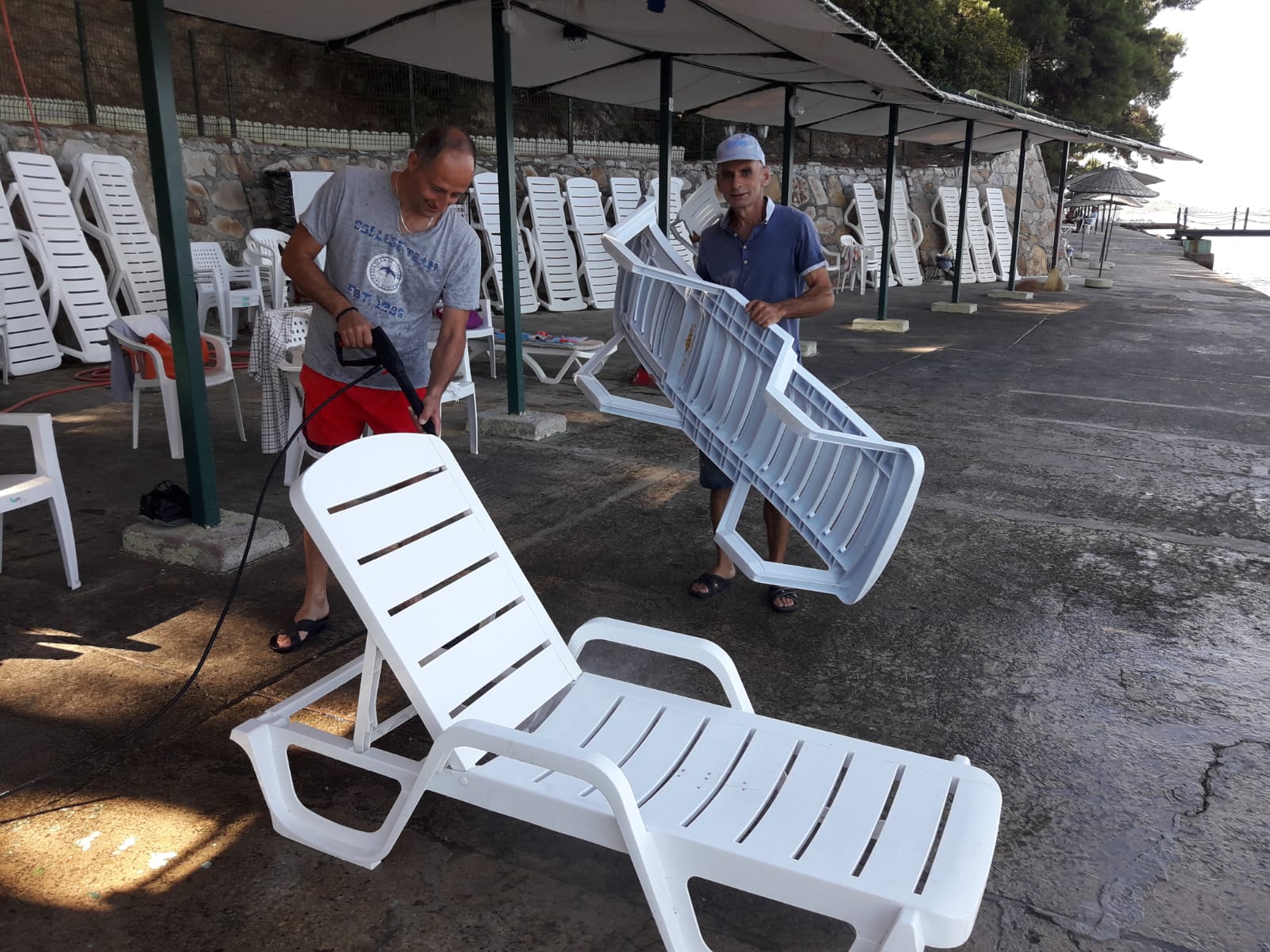Sahil şezlong temizlik ve dezenfekte işleri zaman zaman yapıldı